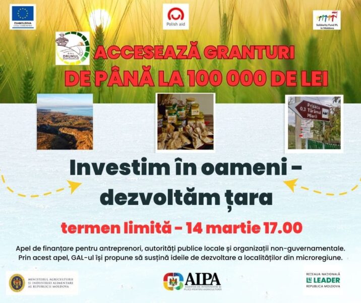 Granturile nerambursabile oferite de către GAL variază de la 𝟰𝟬.𝟬𝟬𝟬 𝗹𝗲𝗶 𝗹𝗮 𝟭𝟬𝟬.𝟬𝟬𝟬 lei.